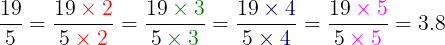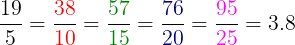 Observe that all of the fractions in the previous question were equivalent fractions (they are all equal to 3.8)