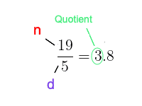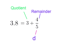 Well, it’s pretty simple. The integer portion (3) of 3.8 gives us the quotient.