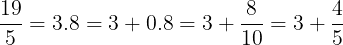 Example: Convert 19 ÷ 5 to a mixed fraction.
